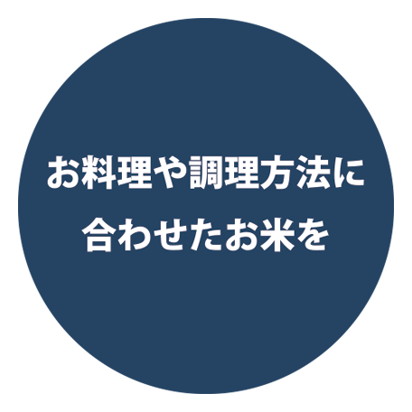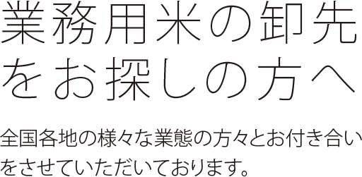 業務用米をお求めのお客様には、あっさり後味の米、おにぎりやお弁当向きの米、炒めご飯向きの米など、料理や用途に合わせたお米をご提案いたします。